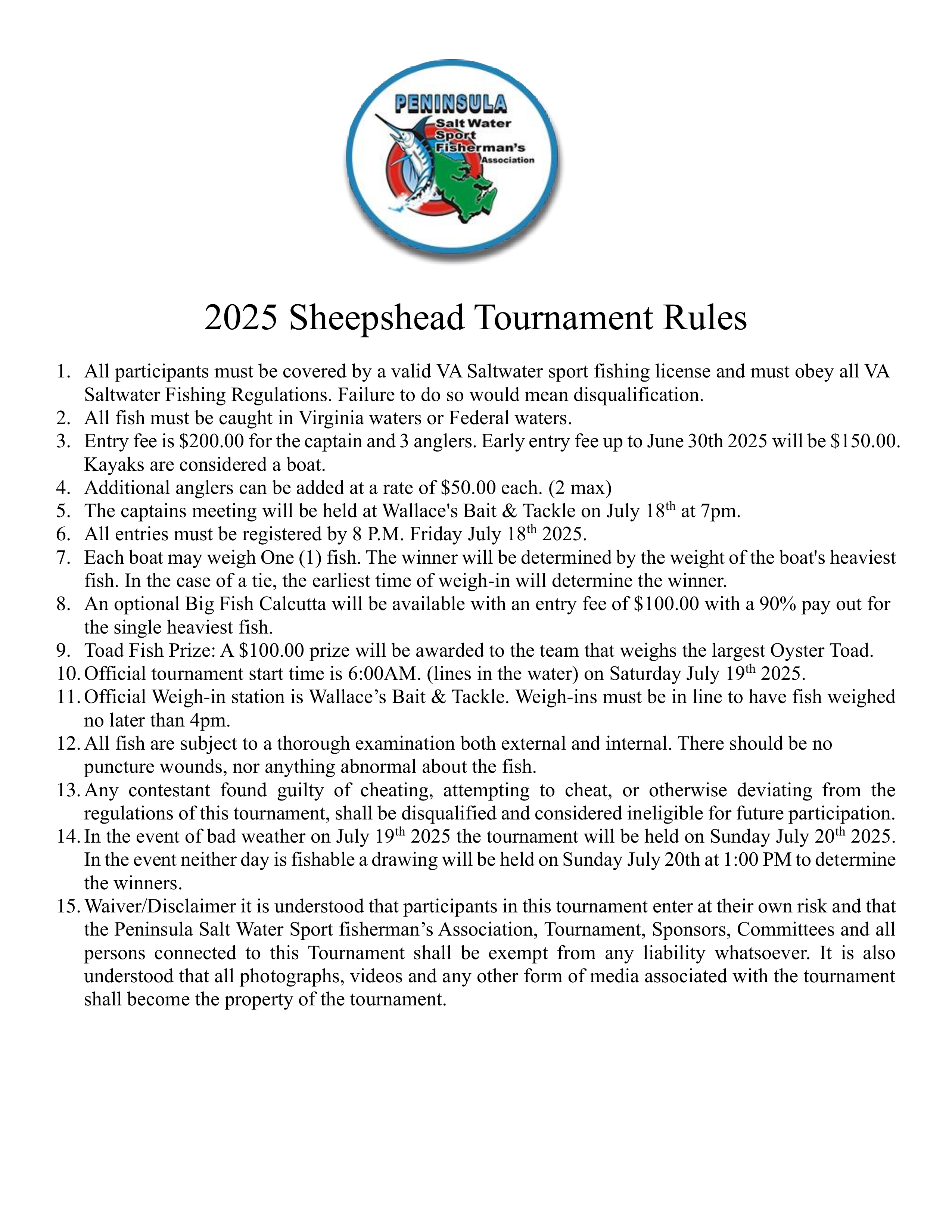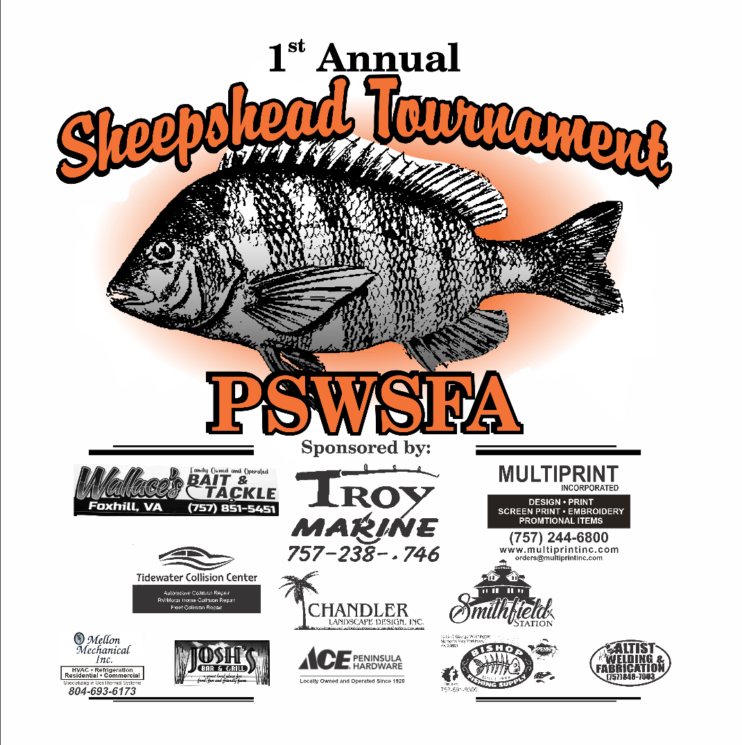Welcome to the PSWSFA's 1st Annual Sheepshead Tournament. Virginia anglers have discovered another world-class fishery right here in our own backyard. The PSWSFA is excited to announce the 2023 Virginia Sheepshead Tournament to be held August 5, 2023 in the lower Chesapeake Bay.